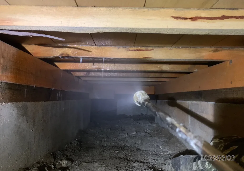 作業内容:床下の土壌と木材部分両方に薬剤を散布。