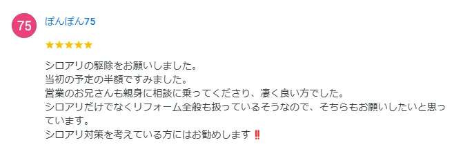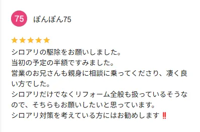 (駆除料金7.5万円+修繕費0円=7.5万円)