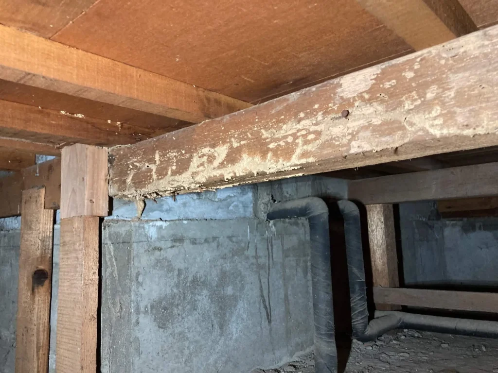 作業内容:お客様の希望で床下の一部にのみ薬剤を散布。被害箇所は交換で対応させていただきました。